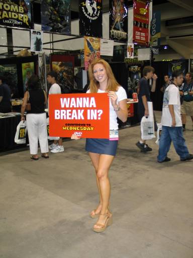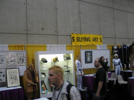 | SDCC 2003 Gallery, Part 2a Want to be credited, or have a correction for us? Email us with subject "SDCC Con pics 2003" at Jump to SDCC 2003 index, Part 1, Part 2a, Part 2b, Part 2c, Part 3a, Part 3b, Part 4a, Part 4b, Part 5. A few tidbits from the Pioneer panel: the Pioneer folks gave their upcoming release schedule, and mentioned that they're definitely planning to get into all aspects of anime, from DVDs to CDs to import merchandise. The new acquisitions they announced were Texhnolyze (Yoshitoshi Abe and Konaka Chiaki), Samurai Champloo (by Watanabe Shinichi, the director of Cowboy Bebop), Gungrave (though a lot of people seemed to think the Pioneer rep said Gunparade), the Read Or Die TV series, and the Rintaro Captain Harlock OAVs. They said they didn't get the Tenchi GXP series, and thought that it was FUNimation that got it. From speaking to a very reliable source somewhere else, we know this is true. They have no plans to put out Trigun season 2, but say they do have first option on it if the licensor decides to make it available. They have no plans for more Sailor Moon, but did a quick poll of the room, and a good portion of the attendees seemed interested in seeing more. They have considered splitting Fushigi Yuugi box into separate DVDs for sale, but haven't made a decision yet. Del Rey: speaking with Dallas Middaugh at Del Rey, all we could find out was that he couldn't tell us the names of the manga titles they will launch yet. Part of it was that they were waiting for last minute word on which particular titles they could announce. This made it sound like they definitely had more than 4 titles in mind (we think), but possibly were only going to launch with 4 of them. He promised we'd be able to find out at their panel on Saturday, though. He also said the manga would be unflipped.