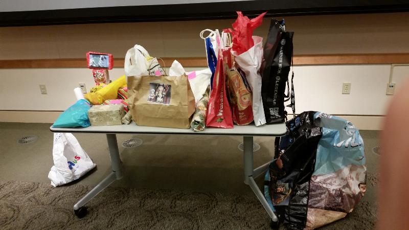 the Santa Clara Library with cake and presents.
